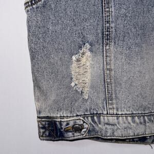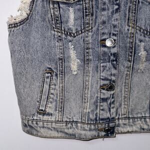 Angel Kiss Distressed Denim Frayed Armholes Jean Vest Womens size medium