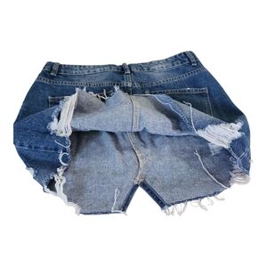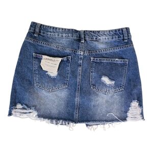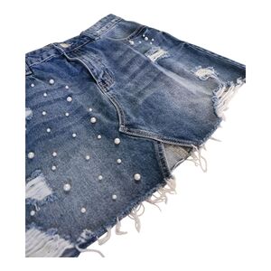 Give your wardrobe a stylish edge with this Angel Kiss distressed denim mini skirt in size Medium. Features trendy ripped details, raw hem, and beautiful pearl embellishments for a mix of edgy and feminine vibes. A versatile piece perfect for dressing up or down!