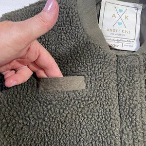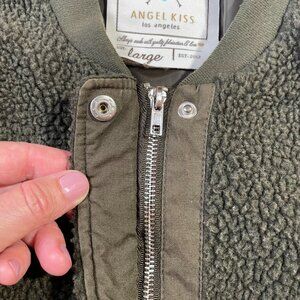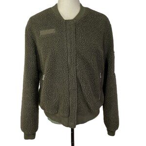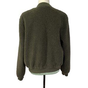 Angel Kiss Fuzzy Sherpa Teddy Bomber Size L Rich Olive Green Crew Neck