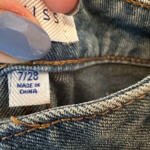 Angel Kiss Heart Patch Blue Jeans Y2K Wide Leg Low Rise Baggy Jeans size 7/28