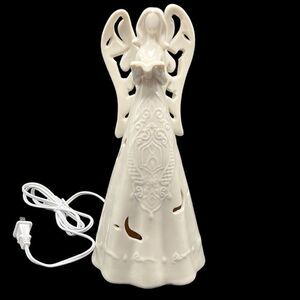 Angel Lamp Napco Figure Reading Ivory Ceramic Cut Out Light Up Religious Plug In