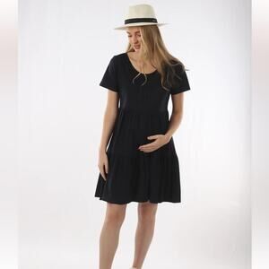 Angel Maternity Tiered Mini Black Maternity Short Sleeve Dress Size Medium