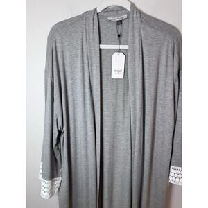 Angel Maternity Womens Sz XL/2XL Bamboo Robe Grey Crochet Trim Hospital Robe NWT