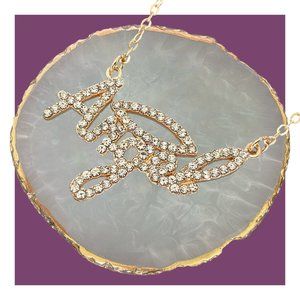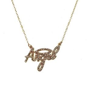 Angel Necklace Gold Plated Rhinestone Word Halo Pendant & Cable Chain Jewelry