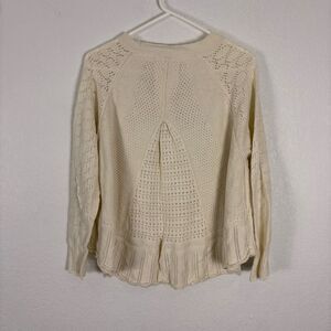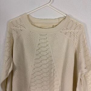 Angel Of The North Anthropologie Ivory Open Knit Pullover Crewneck Sweater Size