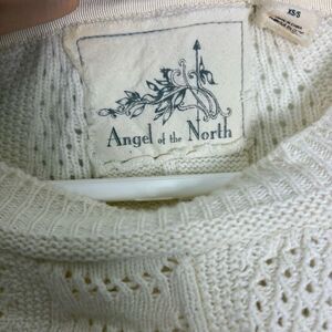 Good condition Angel Of The North Anthropologie Ivory Open Knit Detail Pullover Crewneck Sweater