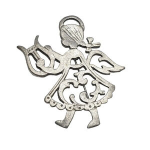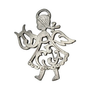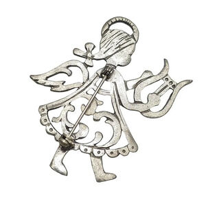 Angel Openwork Brooch Pin Silver Tone Vintage