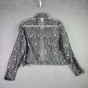 Angel Pie Sheer Silk Embroidered Floral Cropped Jacket M L Fairycore Vintage Y2K