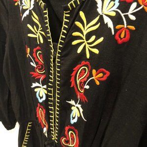 Rayon Linen blend elastic waist short romper with embroidery detail and pockets. Super cute, worn once. Size small. No rips, stains, or tears.