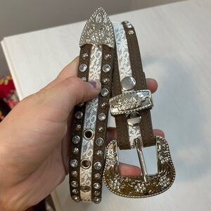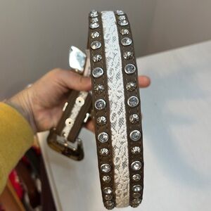 Angel Ranch NWT Rhinestone and Lace Leather Belt w/ Silver Engraved Belt Buckle
