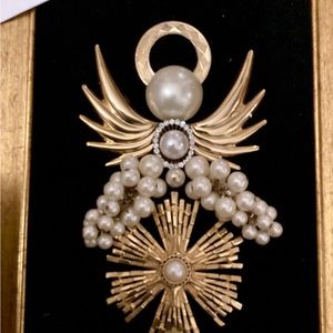 Angel Rosa was created with refurbished, jewelry and gold tones and pearl a touch of zirconia on black velvet in a gold frame, she will add elegance to any room you place her in