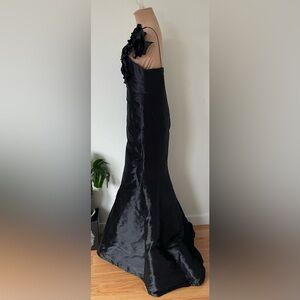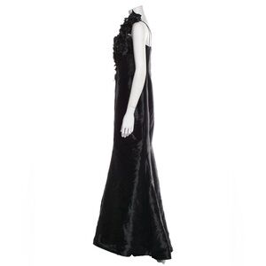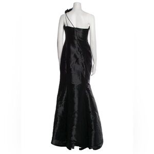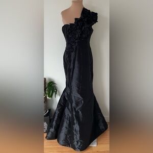 Angel Sanchez Black Floral Embellished One Shoulder Silk Evening Gown EUC Size 8