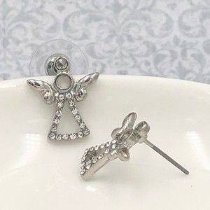 🌼 Angel Silver Rhinestone Dainty Stud Earrings
