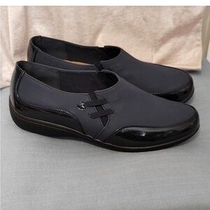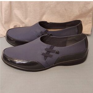 Angel Steps Black/Navy Patent Leather accented flats with Arch Support size 10