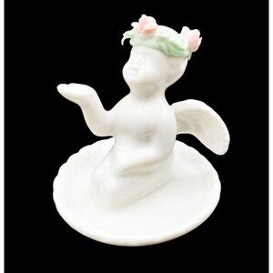 Angel Trinket Dish Porcelain Vintage Jewelry Cherub Flower Crown 1980s Decor