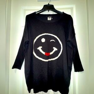 Angel WINK & SMILE EMOJI PULLOVER Black Sweater Smiley Face Size oversized XS