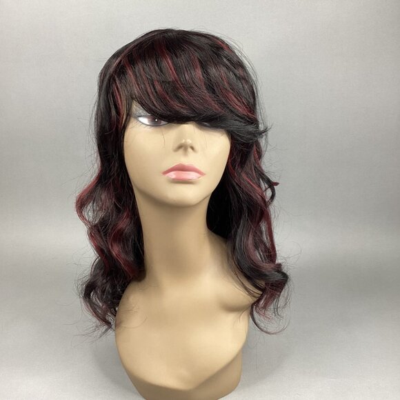 Angel Wig #F1B/118 Off Black Burgundy Long Body Wave Classic Cap Adjustable Synt