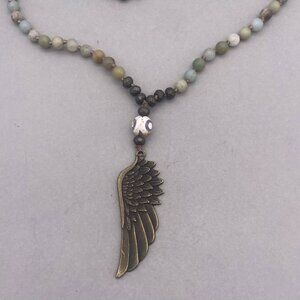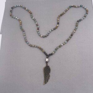 Angel Wing Amazonite Picasso Jasper and Pyrite Necklace 34 Inches