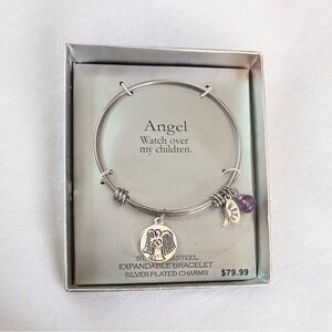 Elegant silver expandable bracelet featuring angel-themed charms. Perfect for adding a touch of grace to any outfit. NIB