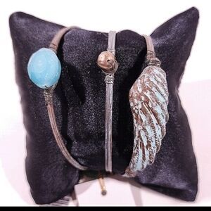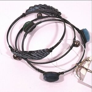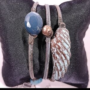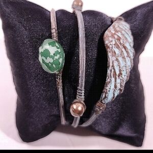 Pantene three piece Stone bangle set. Angel wing panting Bangles with beautiful green, aqua & dark blue stones. Pair with any beaded or strap bracelets for an amazing layered look as shown in photos, sold separately NWT