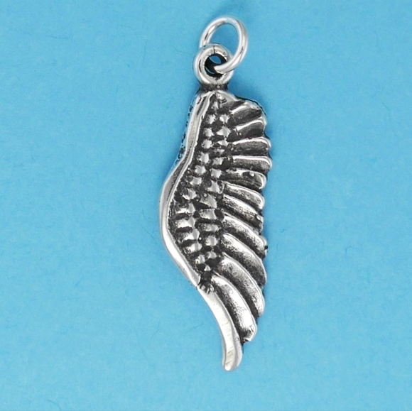 Our sterling silver angel wing charm expresses faith and God's love. Angels are believed to be messengers from Heaven and are here to love, support, comfort, protect, heal and guide.