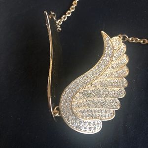 Angel Wings Gold Tone White Crystal Hinged Statement Necklace