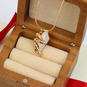 A beautifully crafted pendant featuring an angel figure with sparkling wings, perfect for adding elegance to your look.