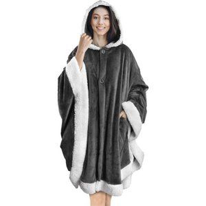 🧿PONCHO WRAP BLANKET WITH POCKETS: Cape wearable wrap is designed with plush sherpa trim. This fleece blanket poncho keeps you warm while snuggling on the couch and lounging at home, but also looks stylish, cute to wear outside. For working at office, for elderly women to keep warm, and as comfy loungewear. Plush wearable blanket cape is warm for fall, winter and lightweight, cool, and breathable for spring, all season. Comes with 2 pockets for cell phones, remotes, glasses, and essentials.