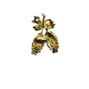 This is a set of two pins. Goldtone Angel lapel pin with a crystal rhinestone accent. Goldtone textured pinecones lapel pin.