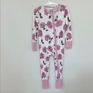 Charming pink footie with floral design. Soft and cozy for little ones.