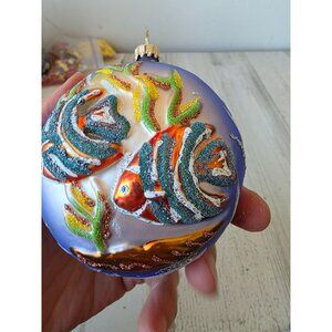 Angel fish glass ornament fish glitter tropical Hawaiian shell Xmas tree