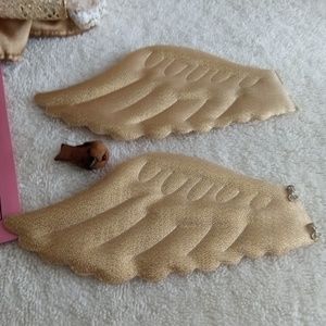 She is dressed in a golden gown with lace overlay , purple flower . White Pantaloons w lace trim , Golden head pc , Golden Sandals with faux purple stone.