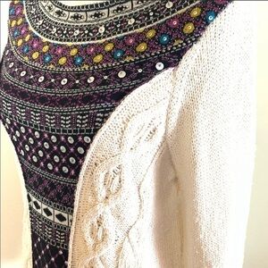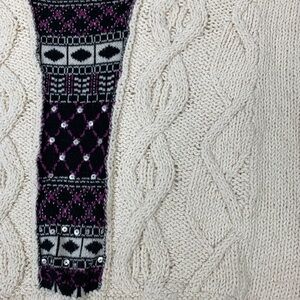 Anthropology Angel of the North Cream Cable Knit Embellished Sweater