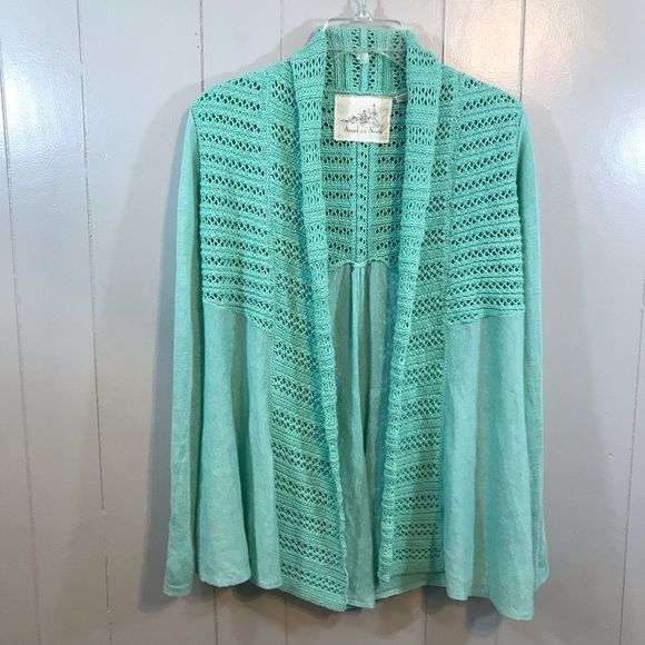 Angel of the North Anthro Linen Blend Green Open Lightweight Cardigan Sweater S