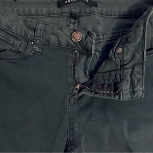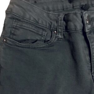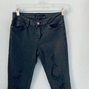 Cute gray distressed skinny jeans. 5 pocket. Button/zip fly. Mid-rise. Cotton/spandex fabric. In great preowned condition. Angel Kiss Size 3