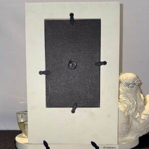 This elegant angel wing picture frame and candle holder set in a soothing cream color adds a serene touch to any room. Perfect for displaying cherished memories.