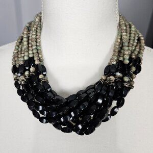 Angela Caputi FIOCCHI Italy Rhyolite Jasper And Black Multi Strand Statement Necklace