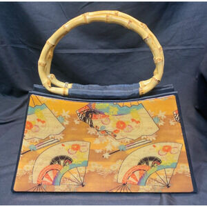 Angela Frascone Asian Influence Fan Design Resin Handbag Art to Wear Vtg 90s