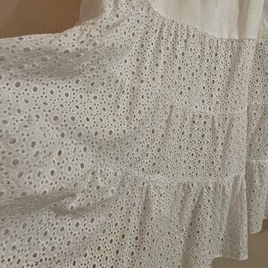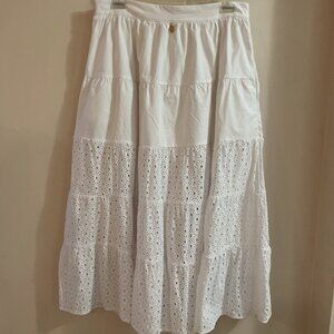 Angela Horton Eyelet Midi Skirt Size L White Tiered Prairie Cottage Boho Blogger