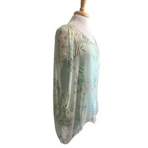 Angela Italy 100% Silk Top Size M Floral Whimsy Cottage Romantic Aqua