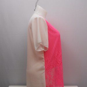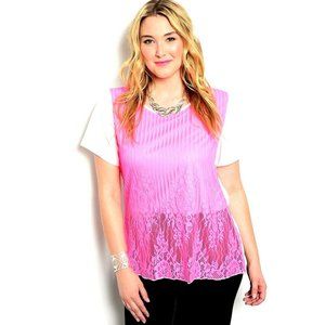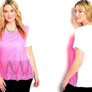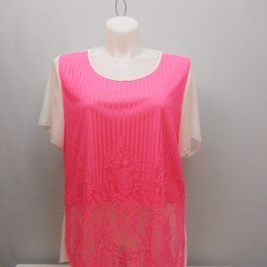 Angela Ladies Tunic Top White Pink Lace-Overlay Plus Size 1XL NWOT