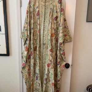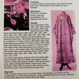 This is the actual dress, a design by Profils Du Monde a beautiful Asian silk floral caftan, worn by the world famous Academy Award winning actress Angela Lansbury as she was a presenter at the 1984 Academy Awards. Certified authentic.