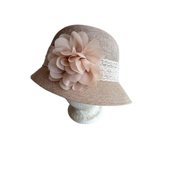 Angela & William Beige Womens Cloche Hat With Lace Band & Flower Accent