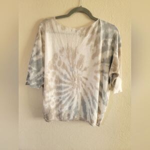 Angela Made in Italy,Tie Dye Lightweight Sweater, Grey, Taupe, White, Size Small