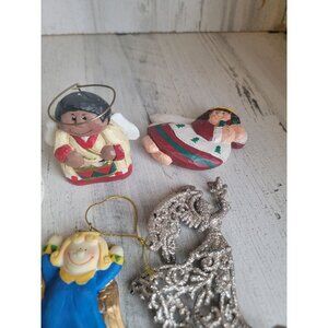 This collection of five Christmas angel ornaments features diverse designs. Crafted meticulously, these ornaments bring a festive spirit to any setting.