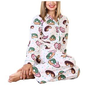 Angelina Womens Pajama Set Sleepwear Fleece Notch Collar Pockets Donut Medium