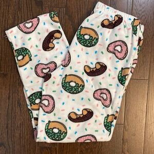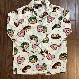 Angelina Womens Pajama Set Sleepwear Button Up Top Pull On Pants Fleece Notch Collar Pockets Donut Multicolor Size Medium