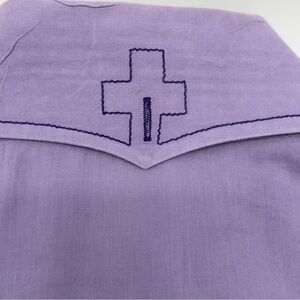 Angelino Men’s Dress Shirt 18 Lavender Cross Embroidery Button Front Cotton