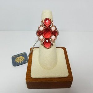 Angelique De Paris Women's Gold Plated Set of Long Red Earrings and Ring Size 6