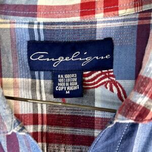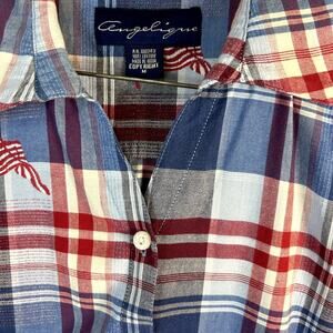 Angelique Size Medium Red White Blue Short sleeve top blouse vintage women